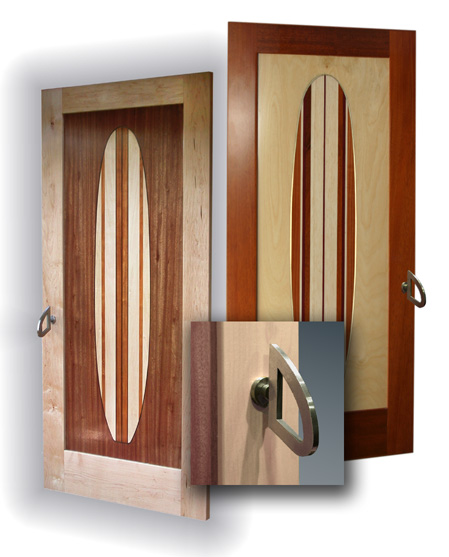 All doors are made from exotic woods. The doors pictured on this page are made from: Mahoganyy, maple, koa, redwood, purple heart, birch, walnut